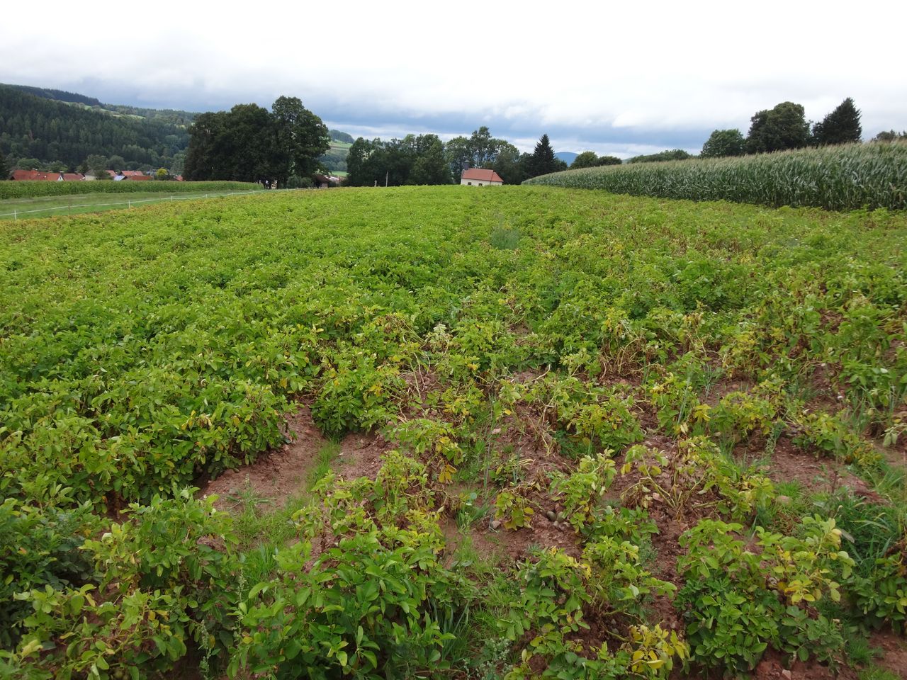Jedes Jahr wird eine neue Kartoffelsorte bei uns getestet: dieses Jahr die Goldmarie. Der Name hört sich erst Mal toll an – aber Papier ist geduldig und so müssen wir uns nach einer ersten Probe-Rodung schon ein eigenes Bild von diese hoch-gelobten Sorte machen.