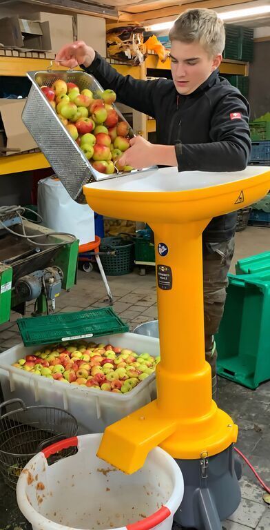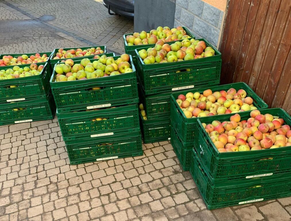 Aber was nützt die gute Ernte, wenn die meisten Äpfel nicht lagerfähig sind. Spätestens Weihnachten kann man die Äpfel im Keller dann doch entsorgen. Da hilft nur: Auspressen und einkochen. Das haben wir jetzt mit ca. 1.000 kg Äpfeln gemacht.