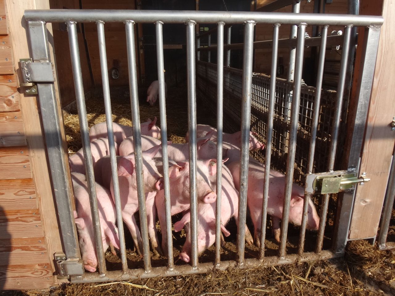 Übrigens: Wer jetzt immer noch glaubt, dass es Schweine gerne dreckig mögen, der muss uns unbedingt besuchen und sich mal anschauen, wo Schweine liegen, wo Schweine fressen und wo Schweine ihr Geschäft verrichten: in ganz klar voneinander abgegrenzten Stall-Bereichen. Da können sich manch andere Haustiere - und manchmal auch Menschen – mal `ne Scheibe abschneiden!