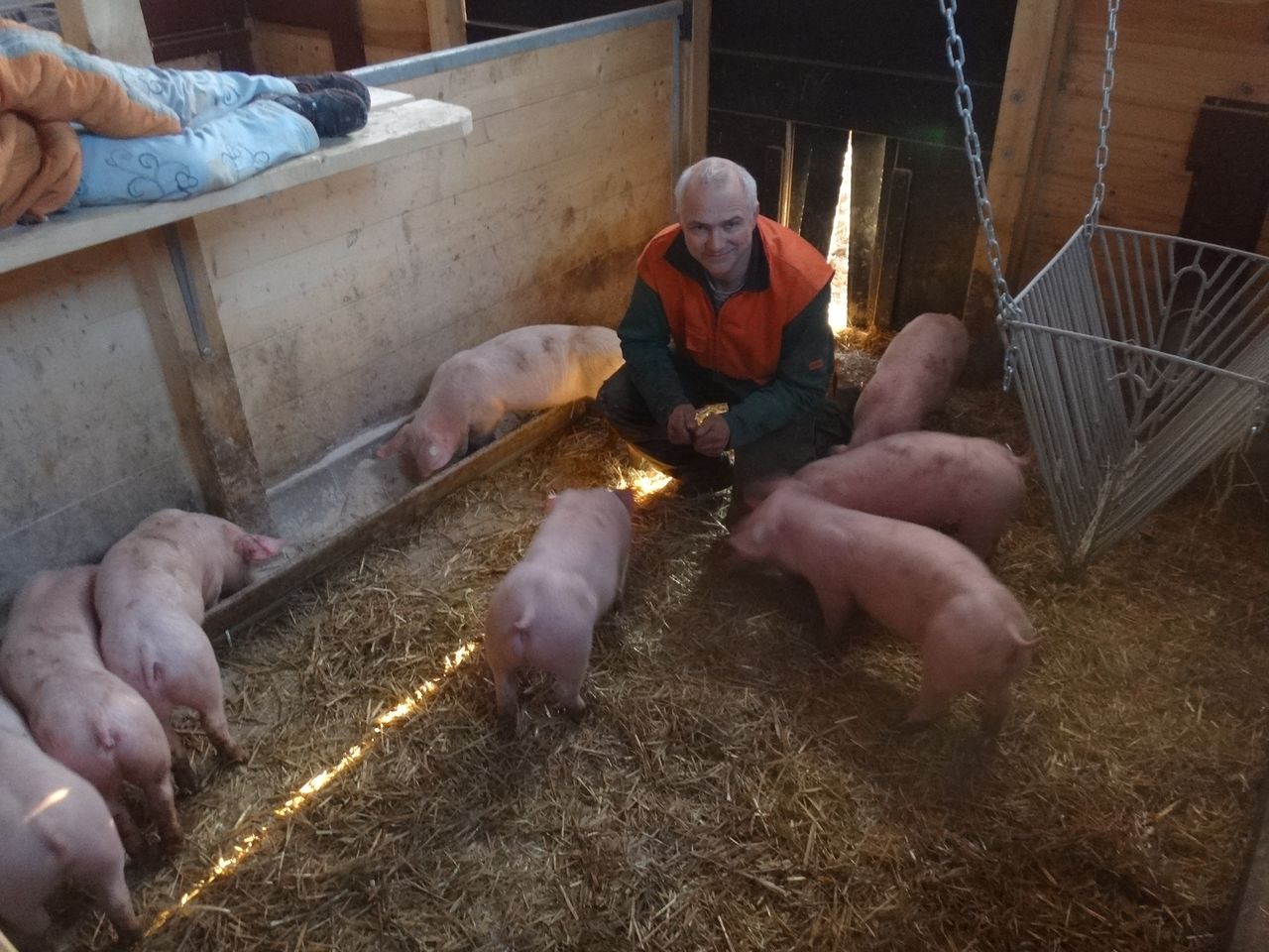 Und wenn dann der Tag gekommen ist, wo es zum Schlachter geht, dann hat man zumindest ein etwas besseres Gefühl, dass man mit dem Lebewesen „Schwein“ ca. 10-12 Monate ordentlich umgegangen ist. Die 10 Monate verteilen sich auf ca. 3 Monate beim Ferkel-Züchter und den Rest bei uns im Stall.